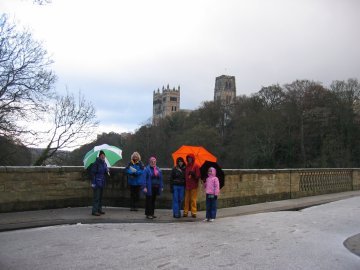The walk was postponed by one day due to bad weather - and what did we get on Tuesday? - More bad weather! Commenced the walk in a snowstorm, though it has to be said it didn't last too long and the weather improved as the day went on. The walk started in the centre of Durham City. From Old Elvet we went up to the Castle and loop in the River Wear which forms the Castle's defences. After crossing the river we carried on through some of Durham University's colleges as well as the Botanical Garden until we arrived in the woods just outside Shincliffe. From here we rejoined the river and returned to the city centre. Not the wildest or most rugged landscape, but it was very photogenic. |